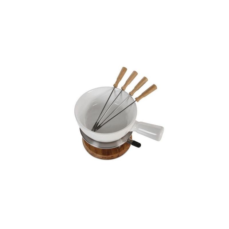 Hubane fondüüõhtu perega on mõnus. Tammepuust alus, valge, luksusliku väljanägemise ja mugava käepidemega fondüüpott. Komplektis on ka põleti, roostevabast terasest alus ja neli fondüükahvlit.